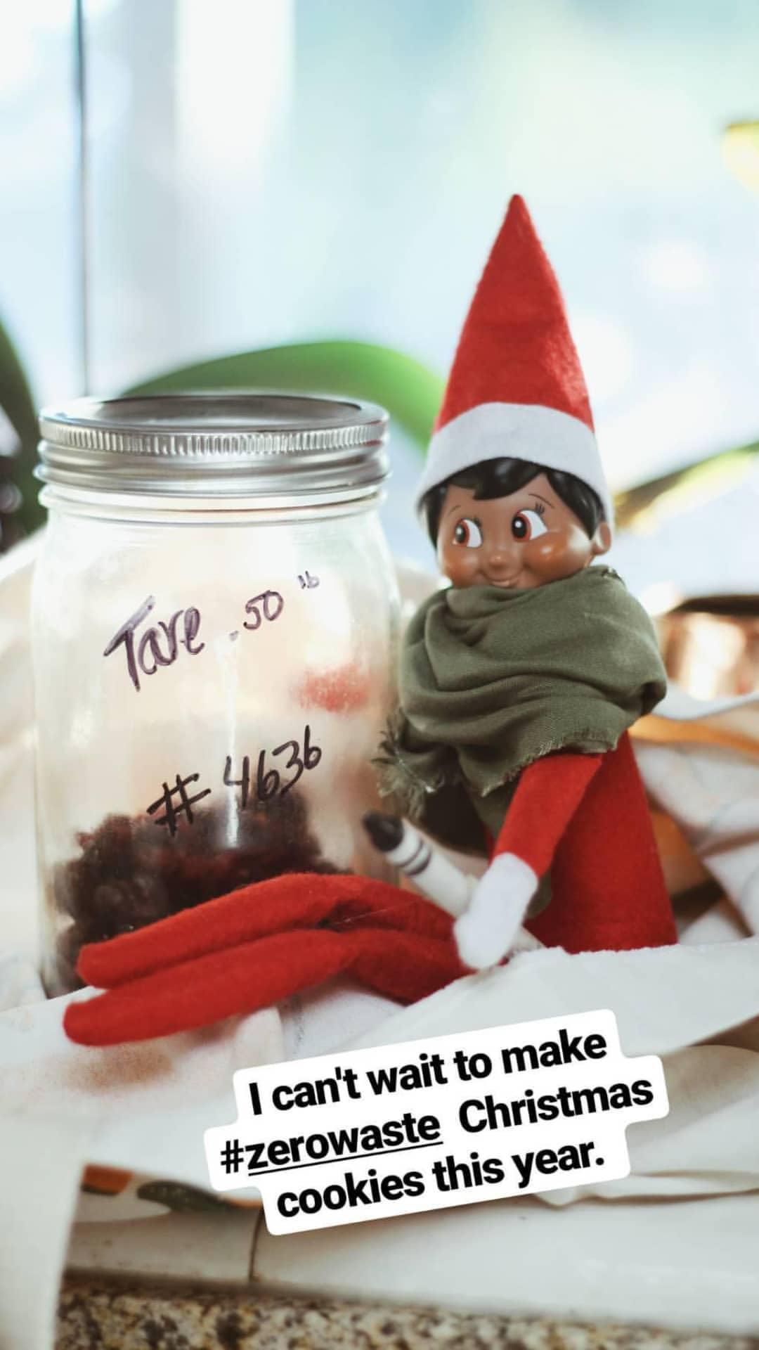 If you already have a scout elf, here are a few fun zero waste ideas for you. These don’t have to be exclusive to the Elf on the Shelf either. You can use any toy or characters that you have. We have multiple elf friends in our family. Our elves don’t report to Santa, but they sure do like to move around and have a lot of fun- and sometimes get into a little bit of mischief along the way. I like to think of them as Winter spirits or fairies. Our elves all arrive when we wake up on December 1st and when we wake up on Christmas Eve, they’ve gone to help Santa get ready for the big night. We also have kindness elves that join in on spreading mindful holiday cheer.