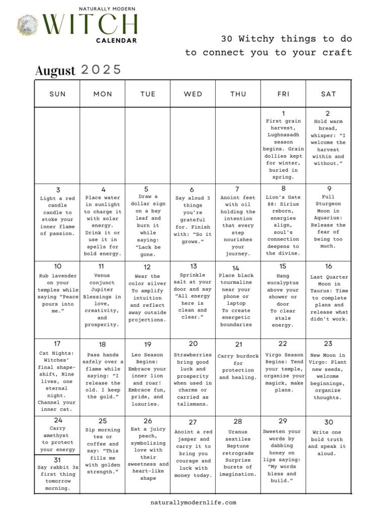 Scroll to the bottom to grab your downloadable August witchy calendar