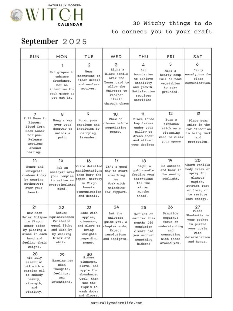 Click here for the Naturally Modern Witches’ Almanac for September.