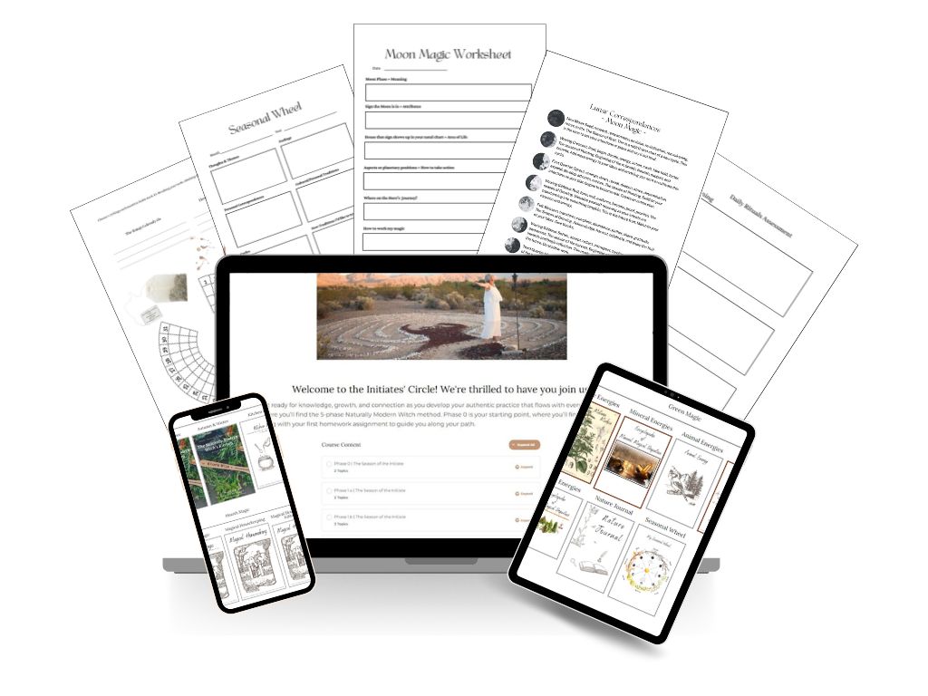 - Access* to The 5-phase Naturally Modern Witch approach for developing and implementing your practice is a comprehensive framework to guide your journey into witchcraft, ensuring a structured and effective learning process at your own pace.